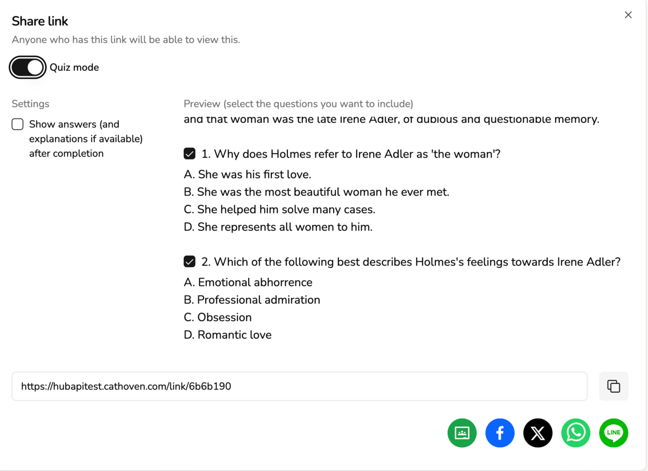 New Feature: Sharing functions for all tools' results (plus quiz mode for student exercises)